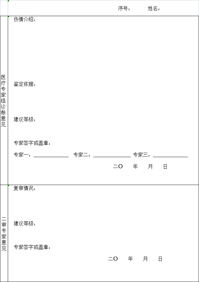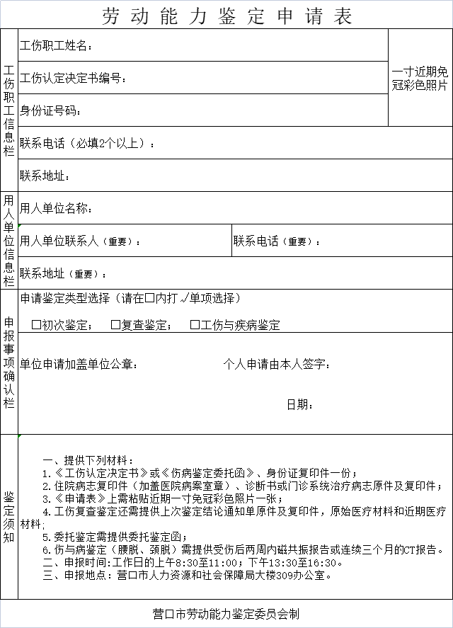 劳动能力鉴定申请表