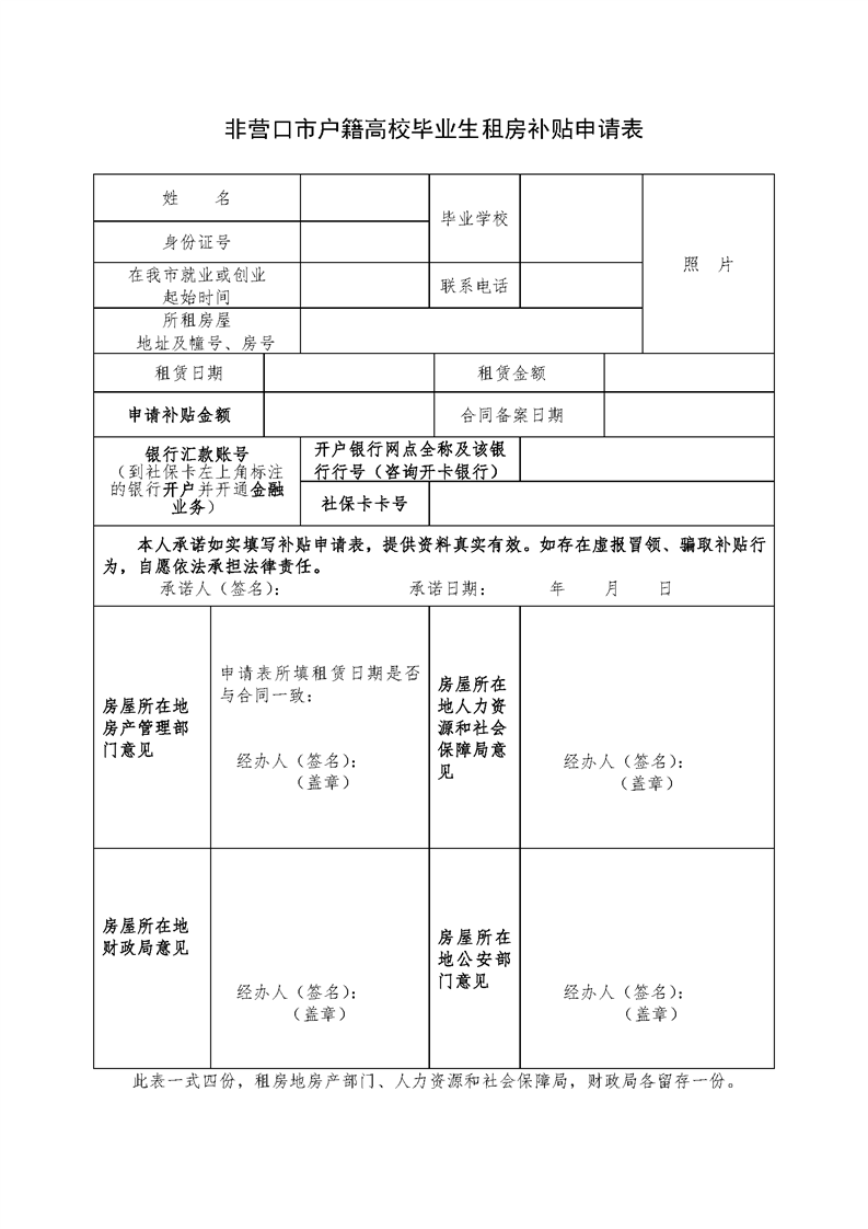 非营口市户籍高校毕业生租房补贴申请表