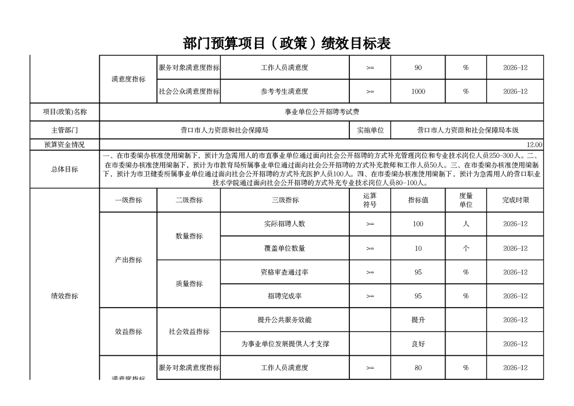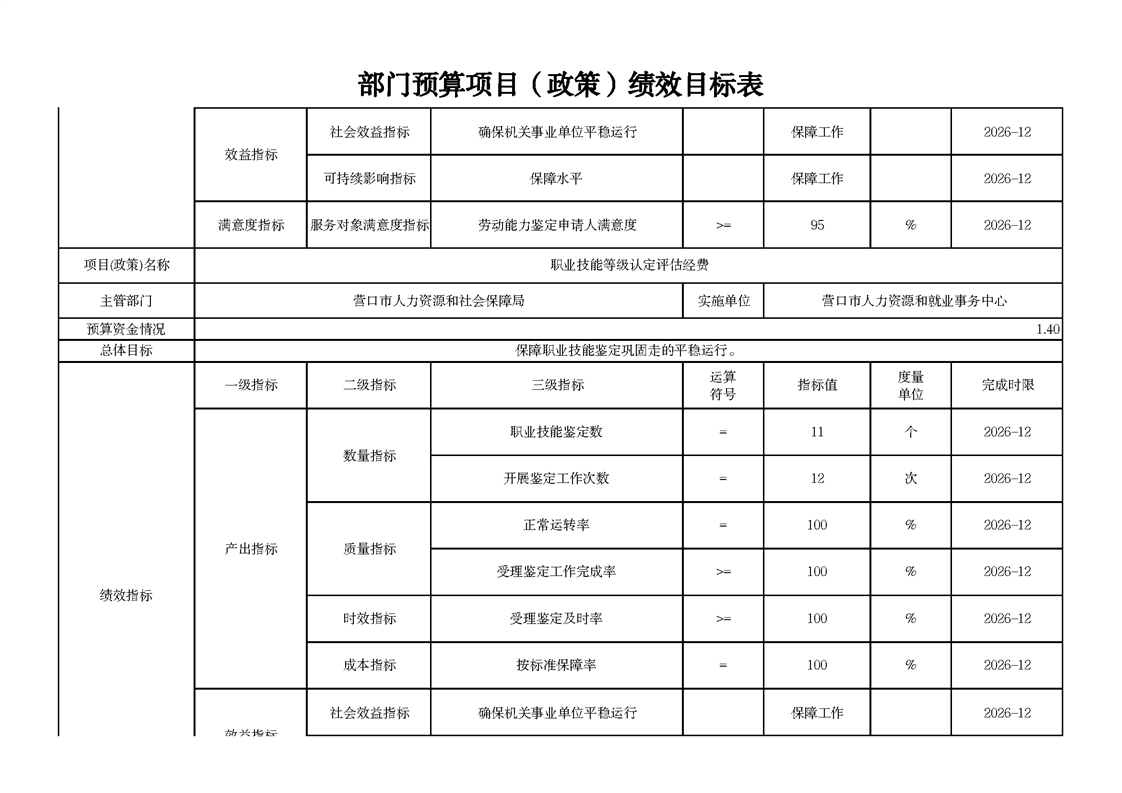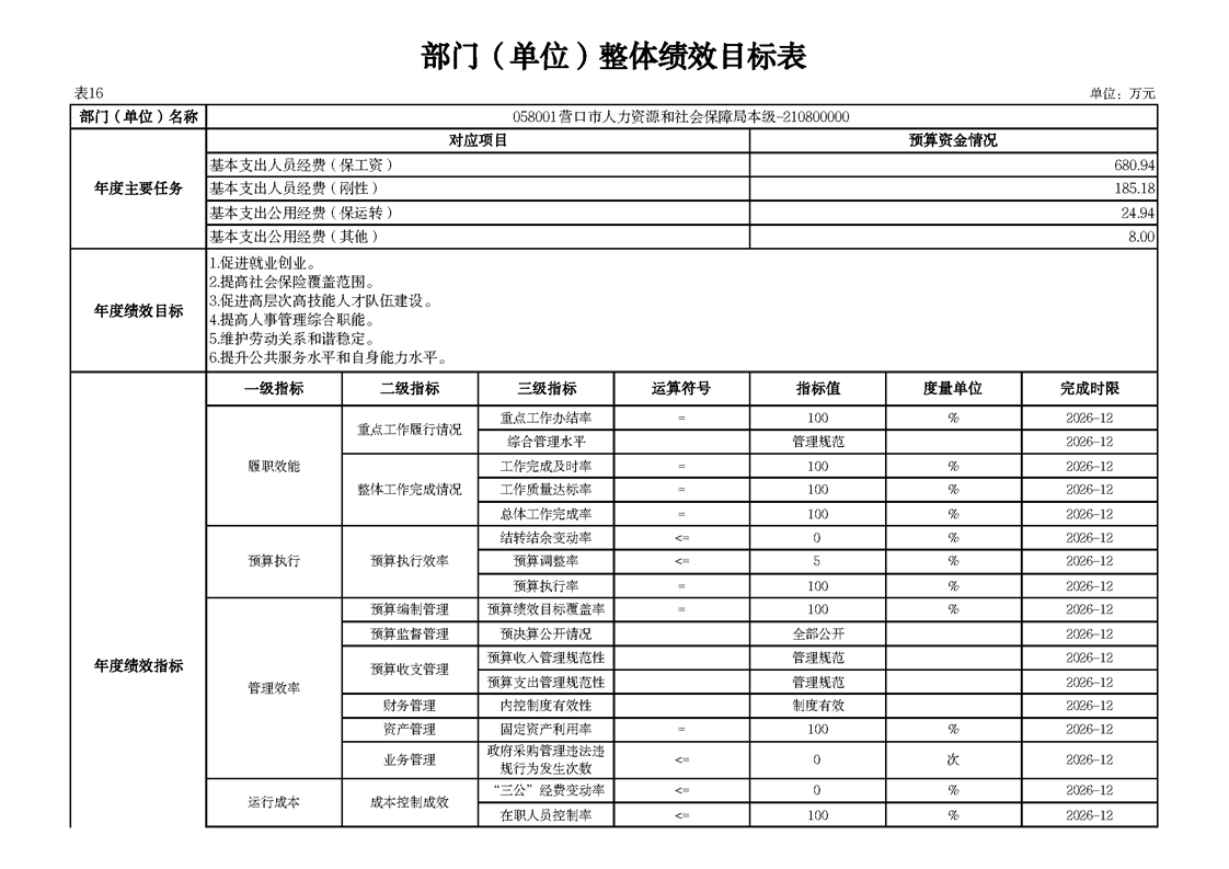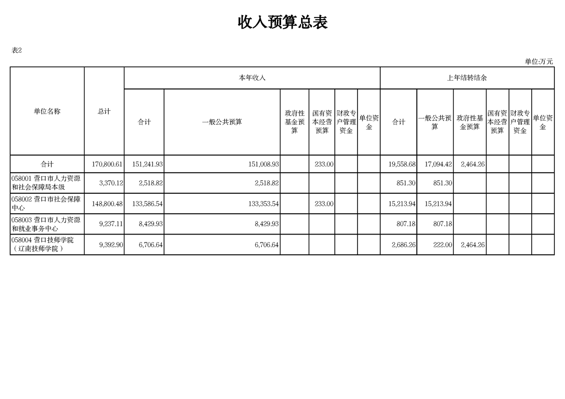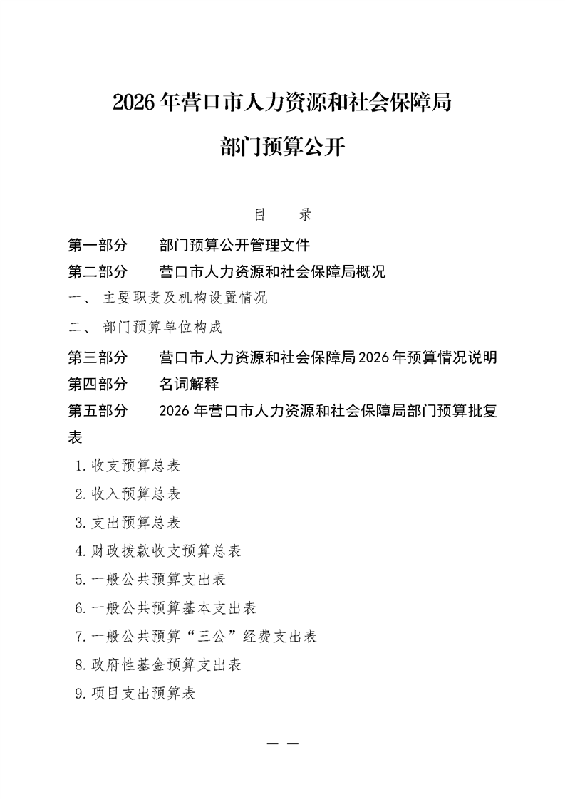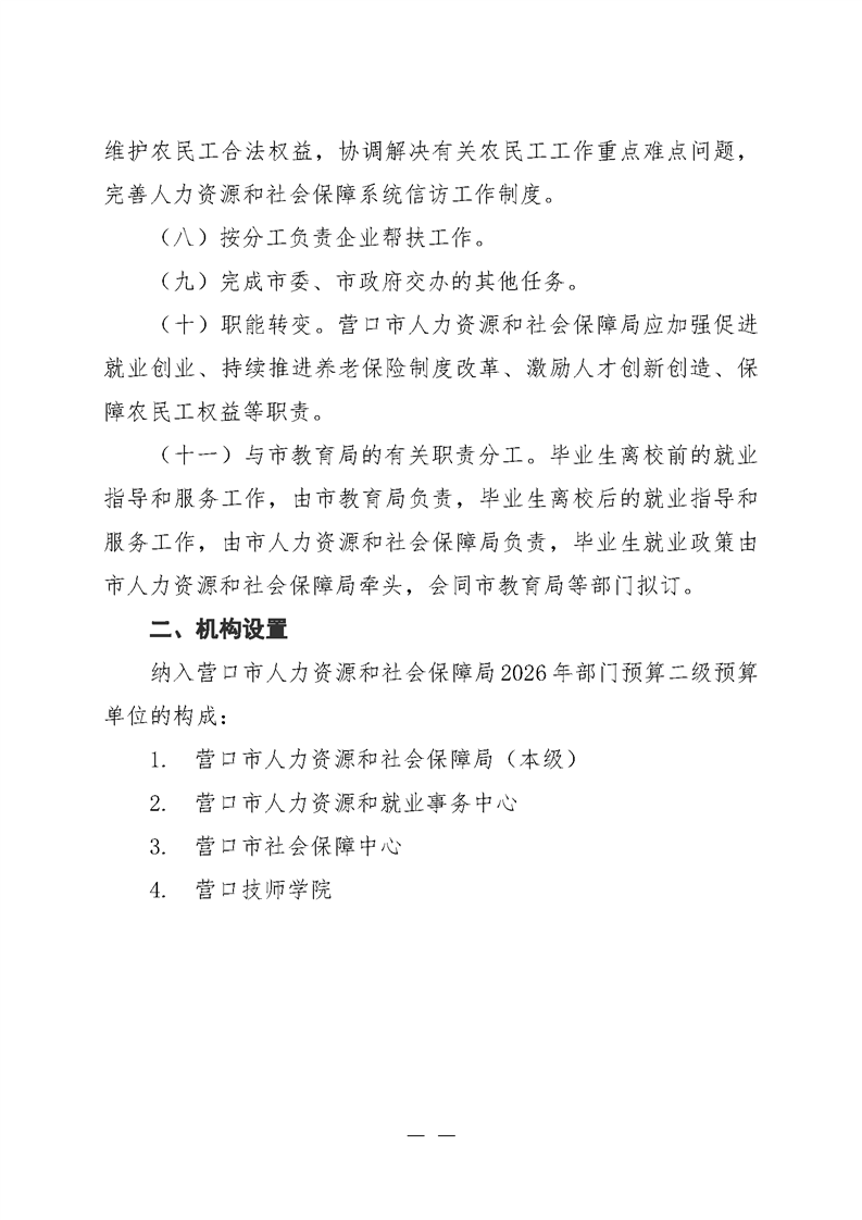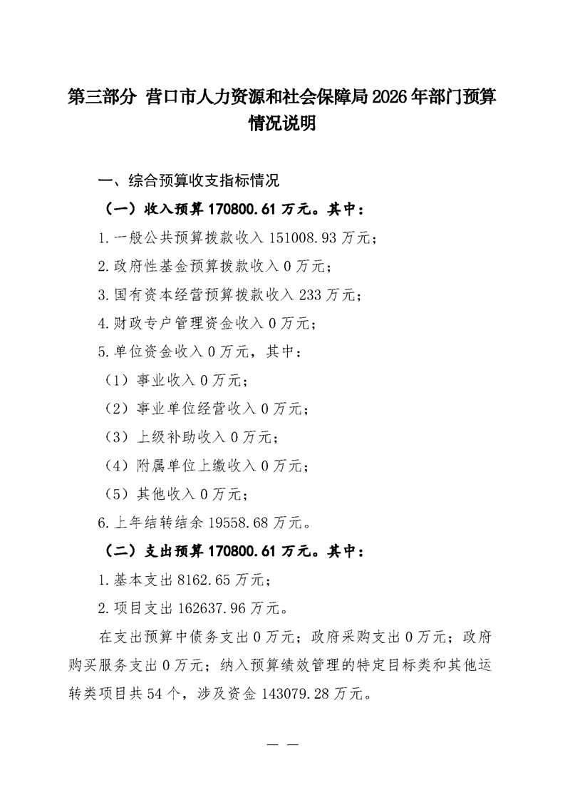 2026年营口市人力资源和社会保障局预算公开(汇总)