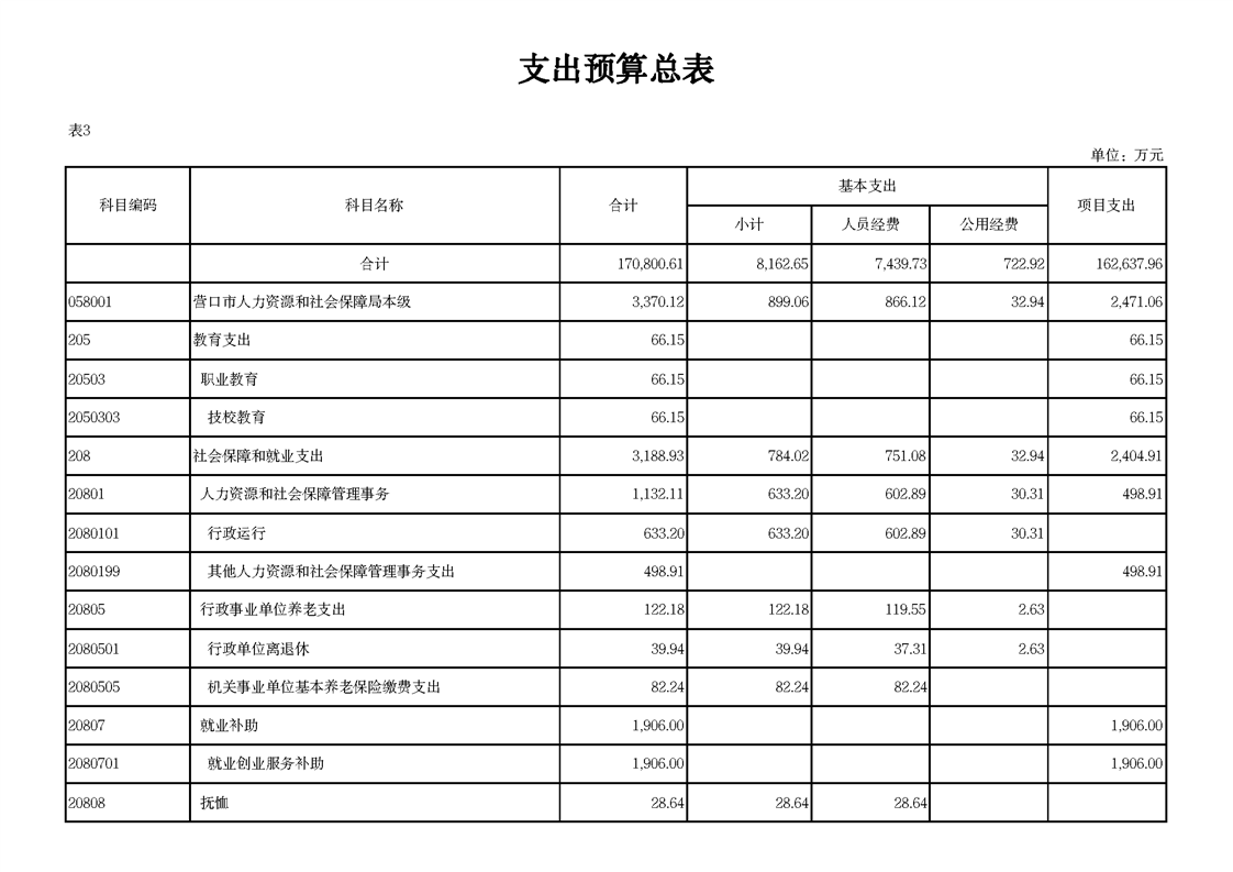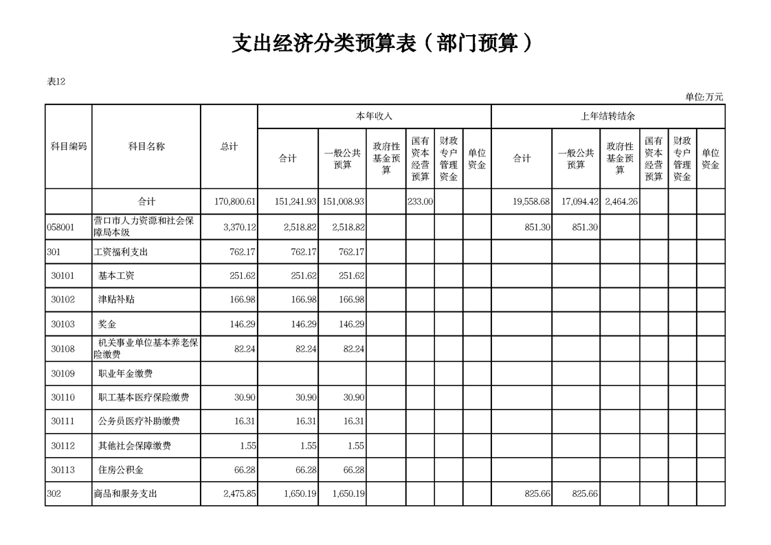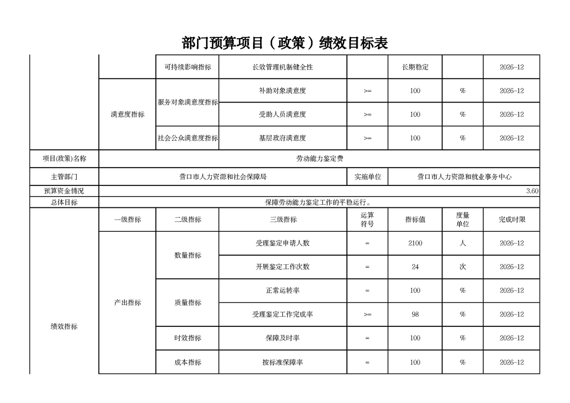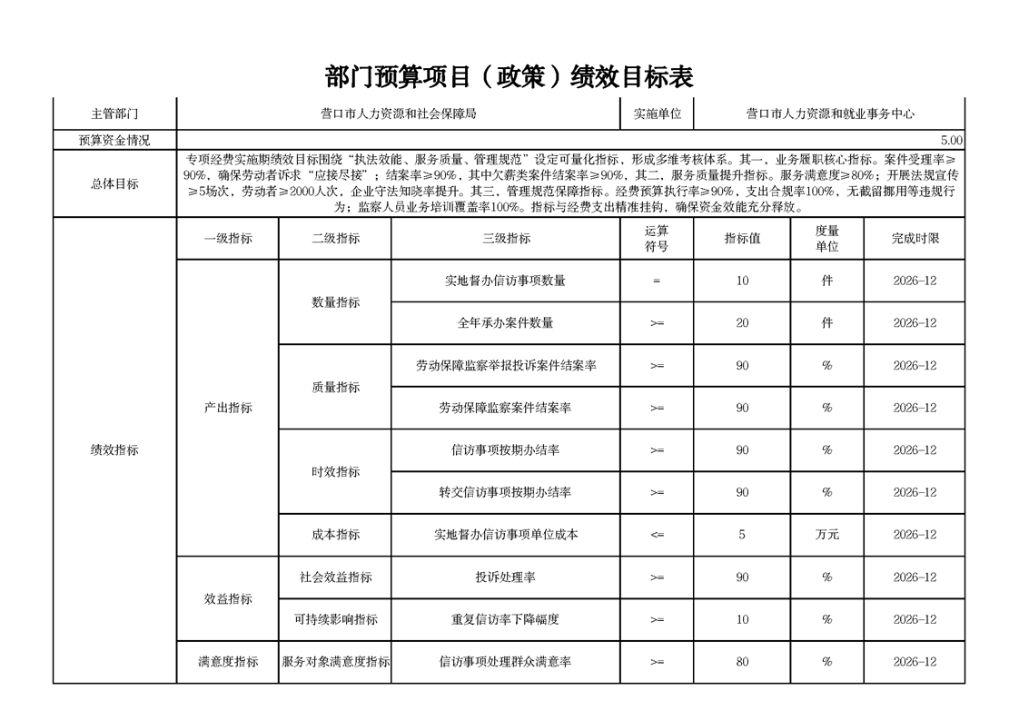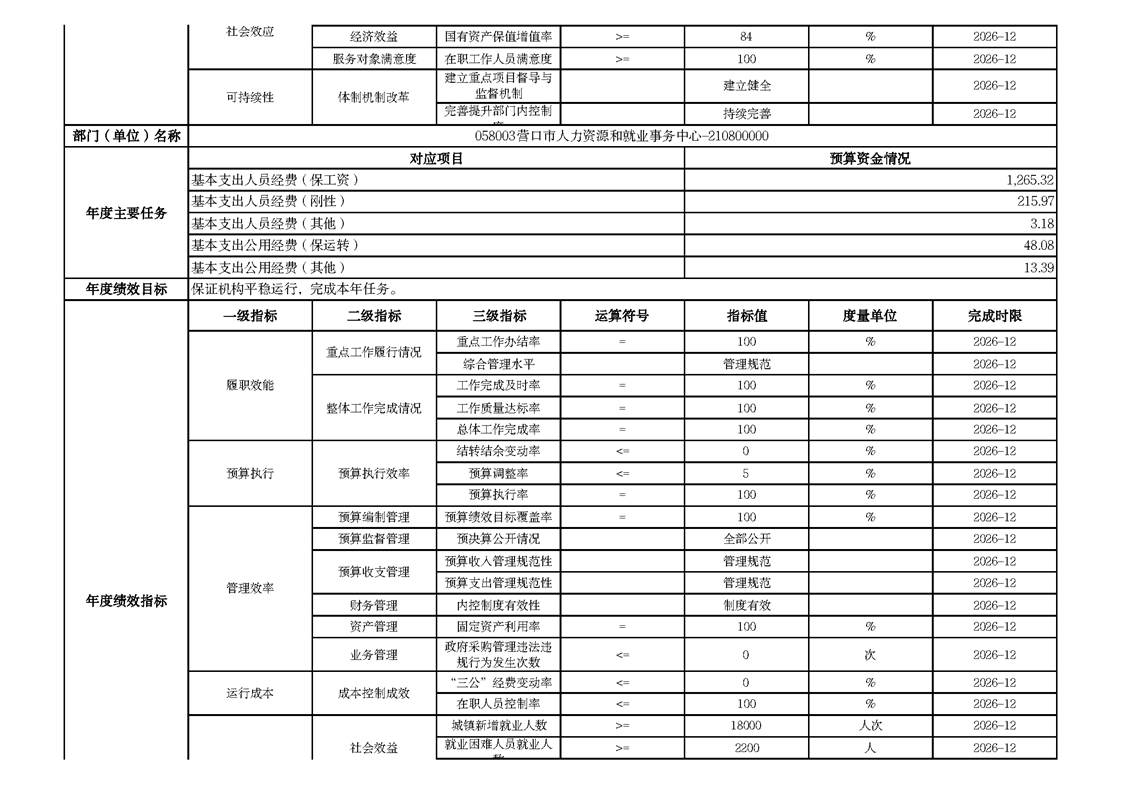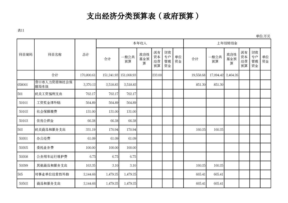 2026年营口市人力资源和社会保障局预算公开(汇总)