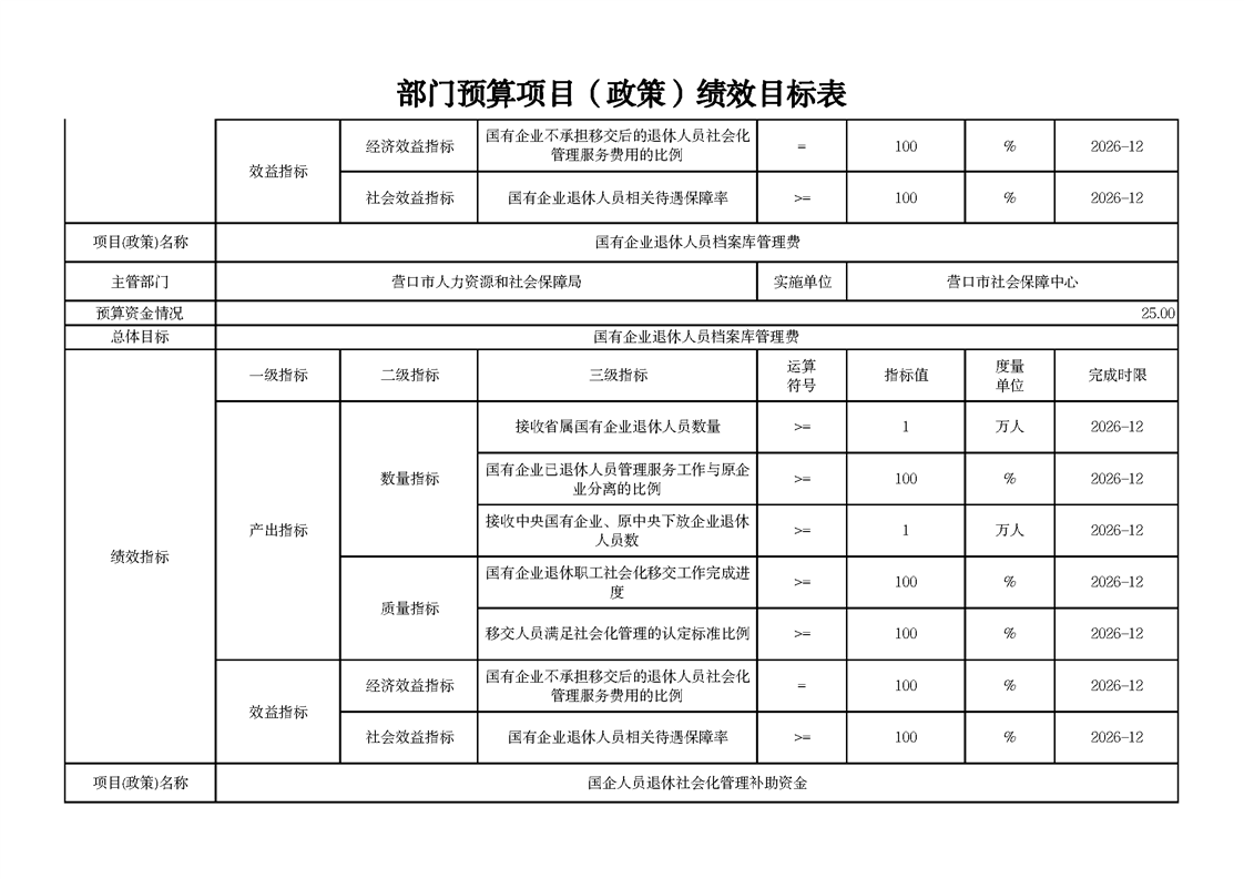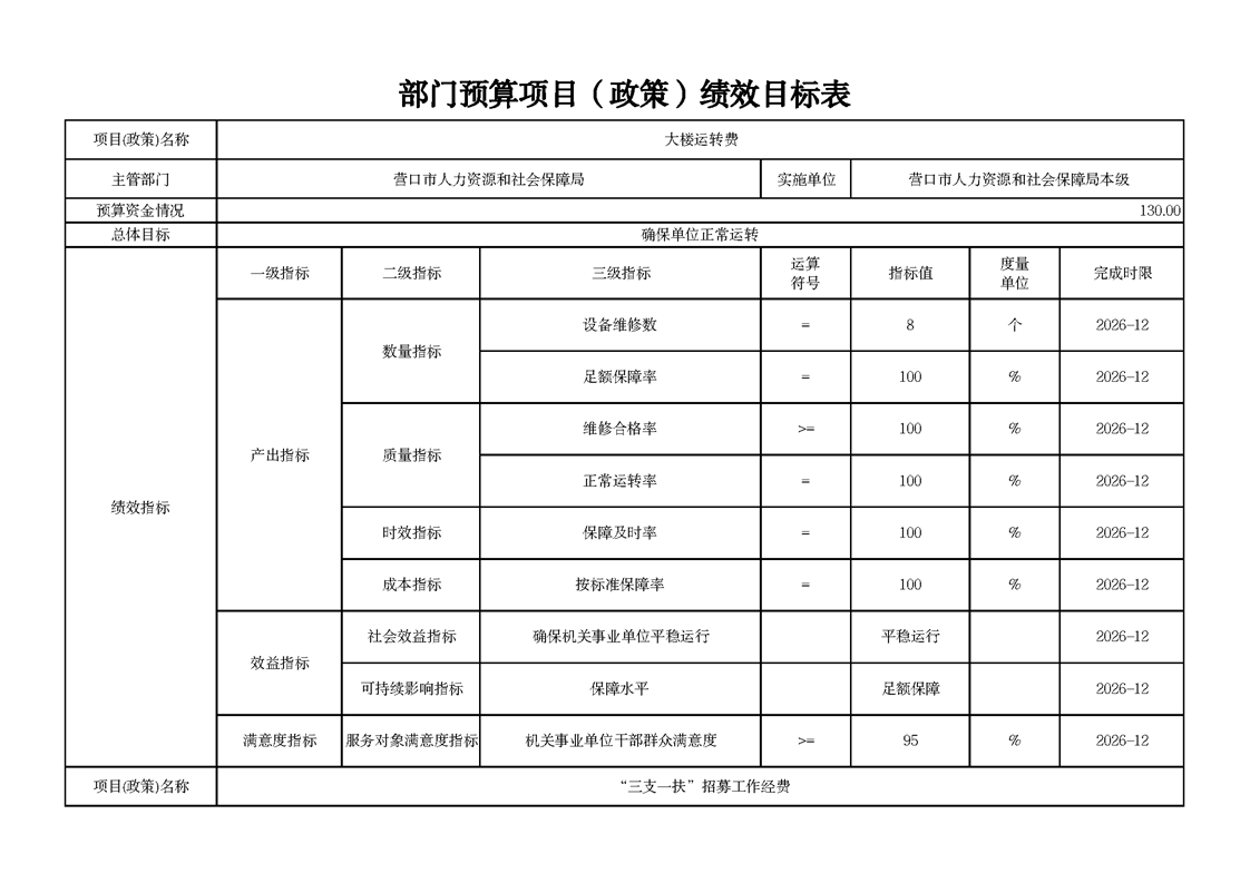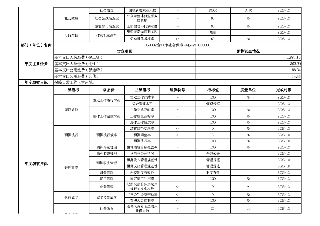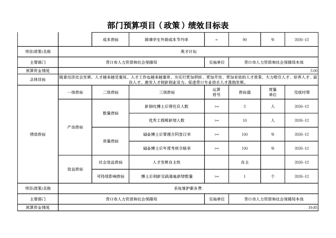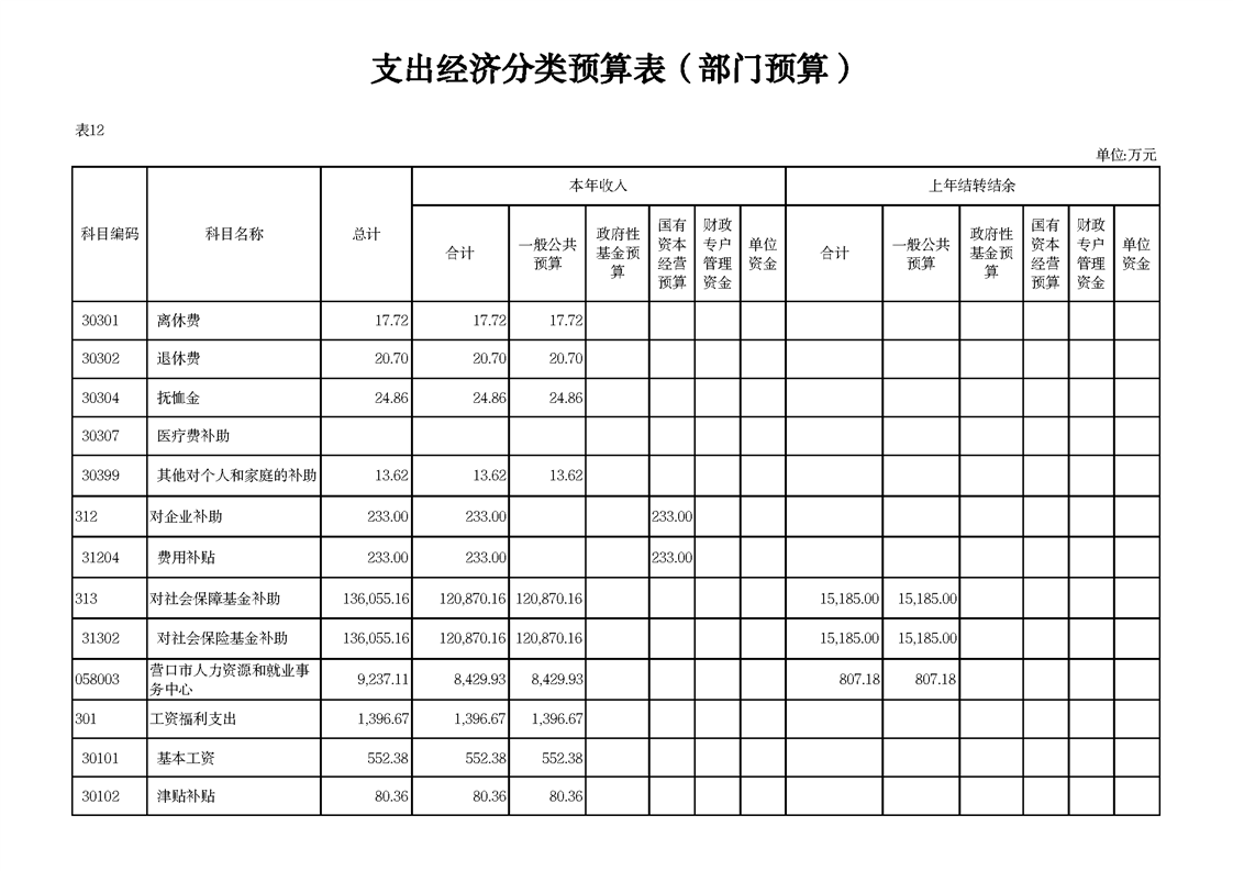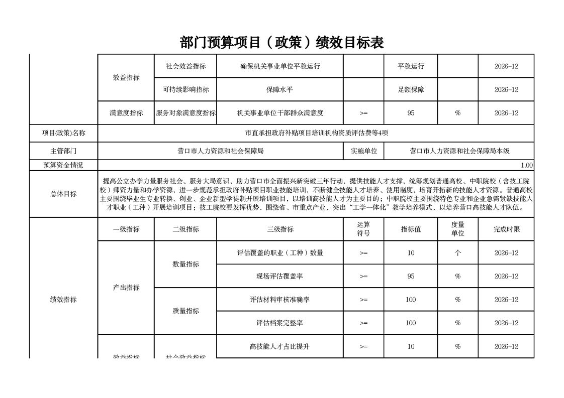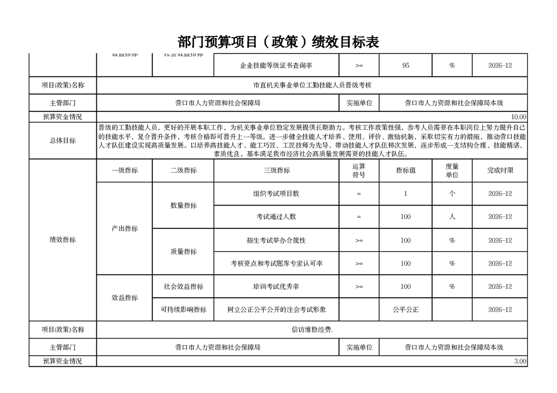 2026年营口市人力资源和社会保障局预算公开(汇总)