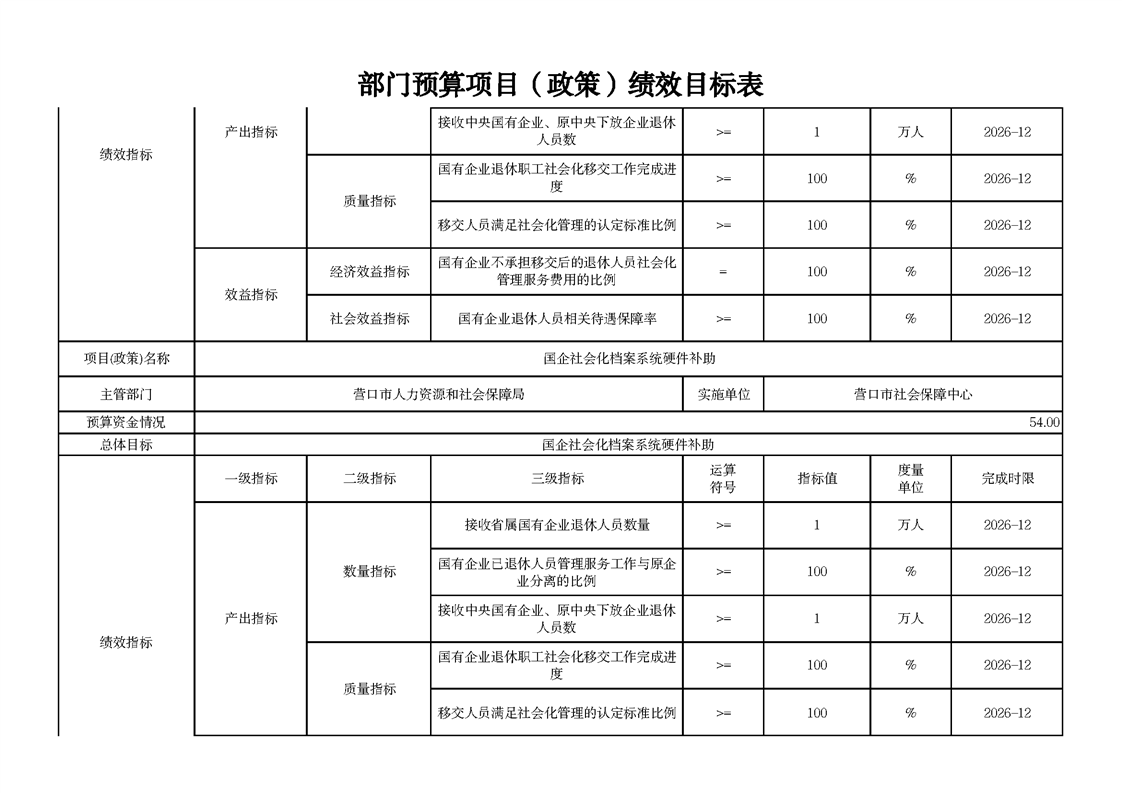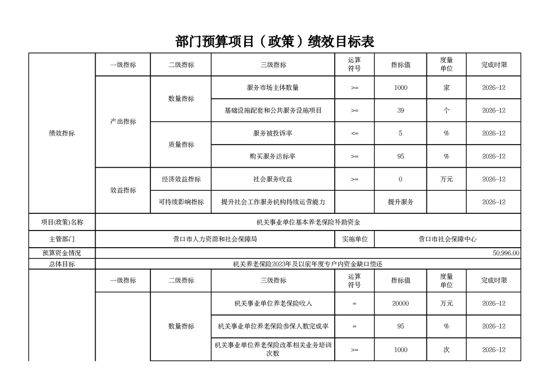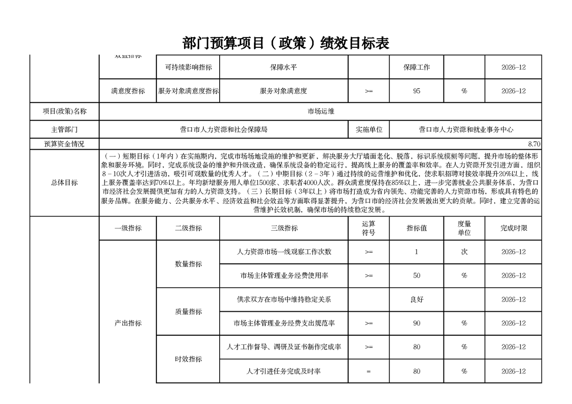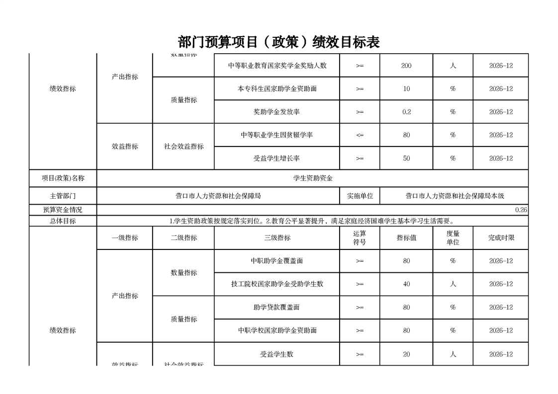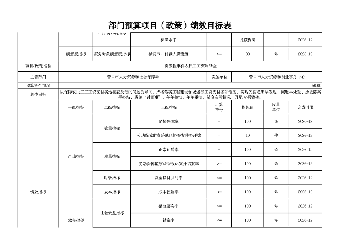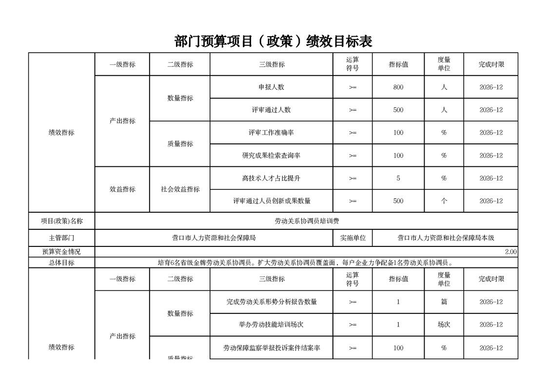 2026年营口市人力资源和社会保障局预算公开(汇总)
