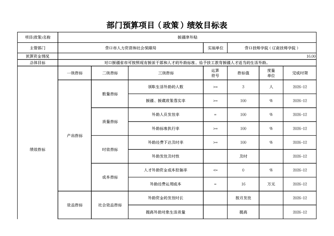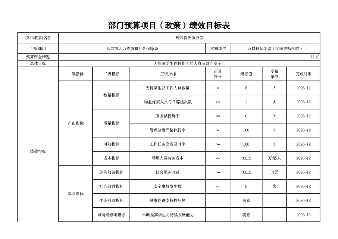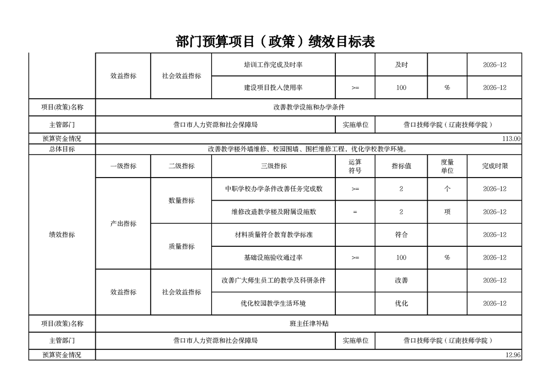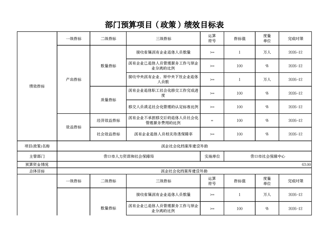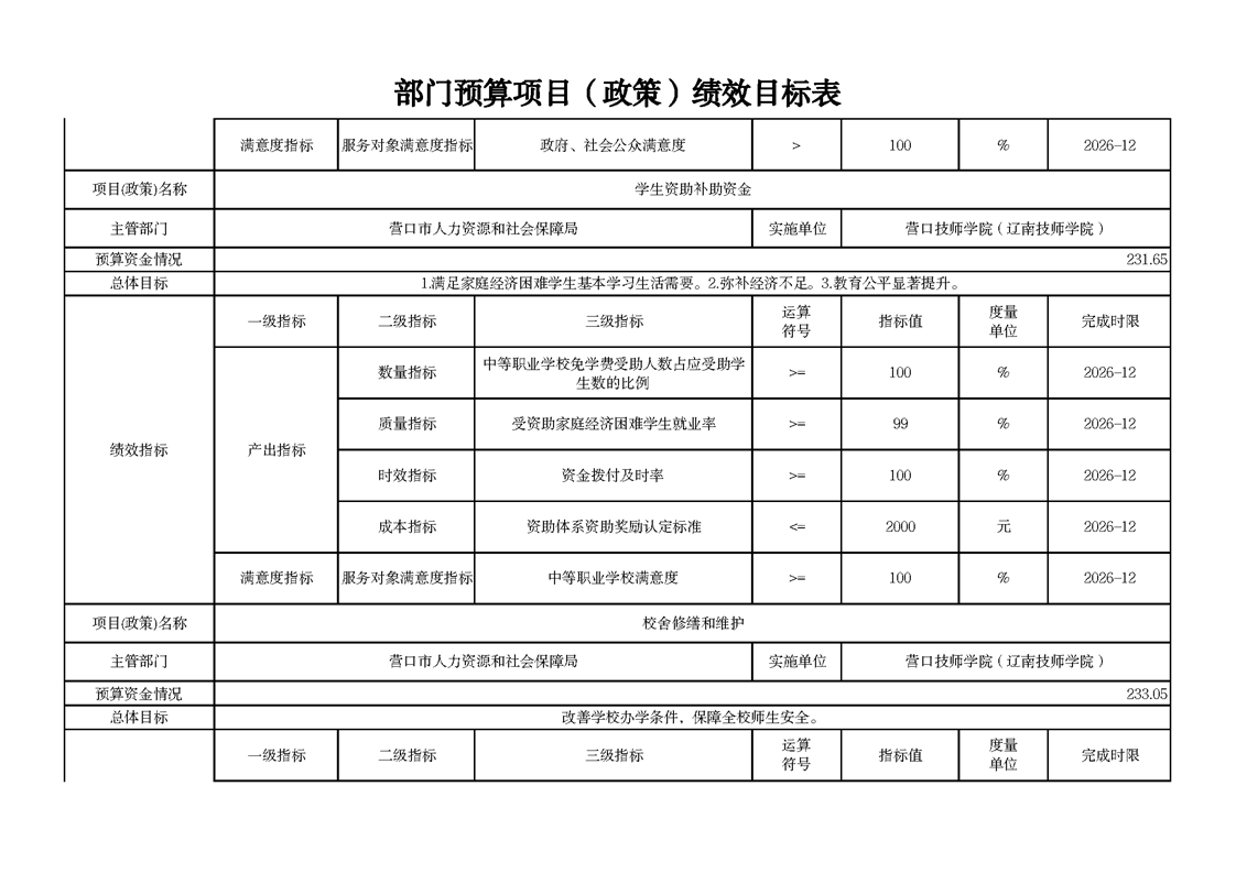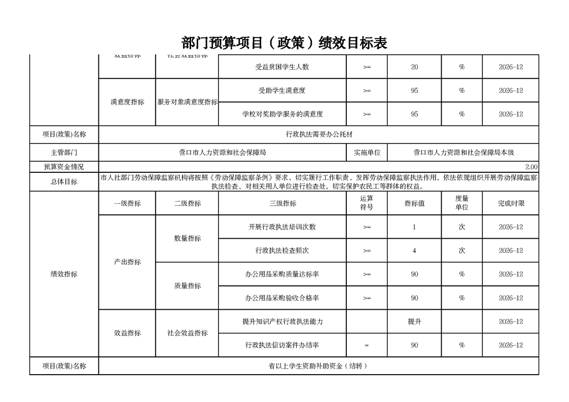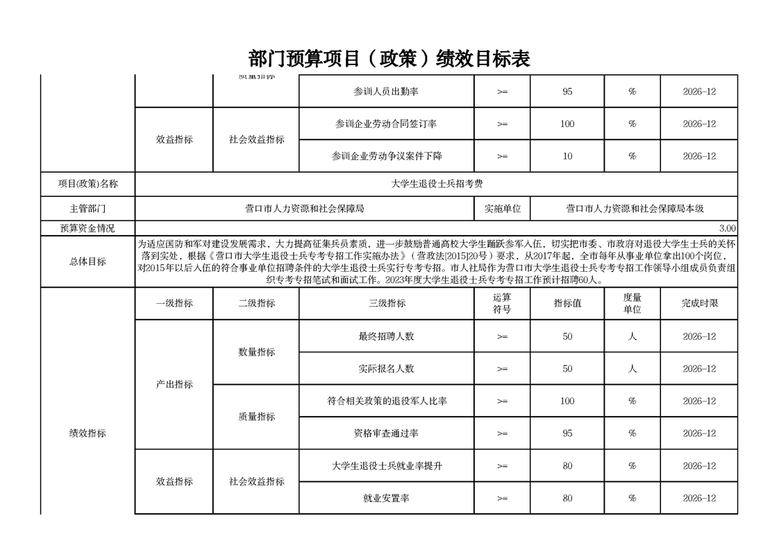 2026年营口市人力资源和社会保障局预算公开(汇总)